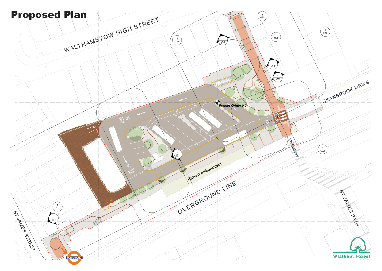 Artist’s impression of the proposed improvement works outside St James Street Overground Station. Image credit: Feix & Merlin Architects