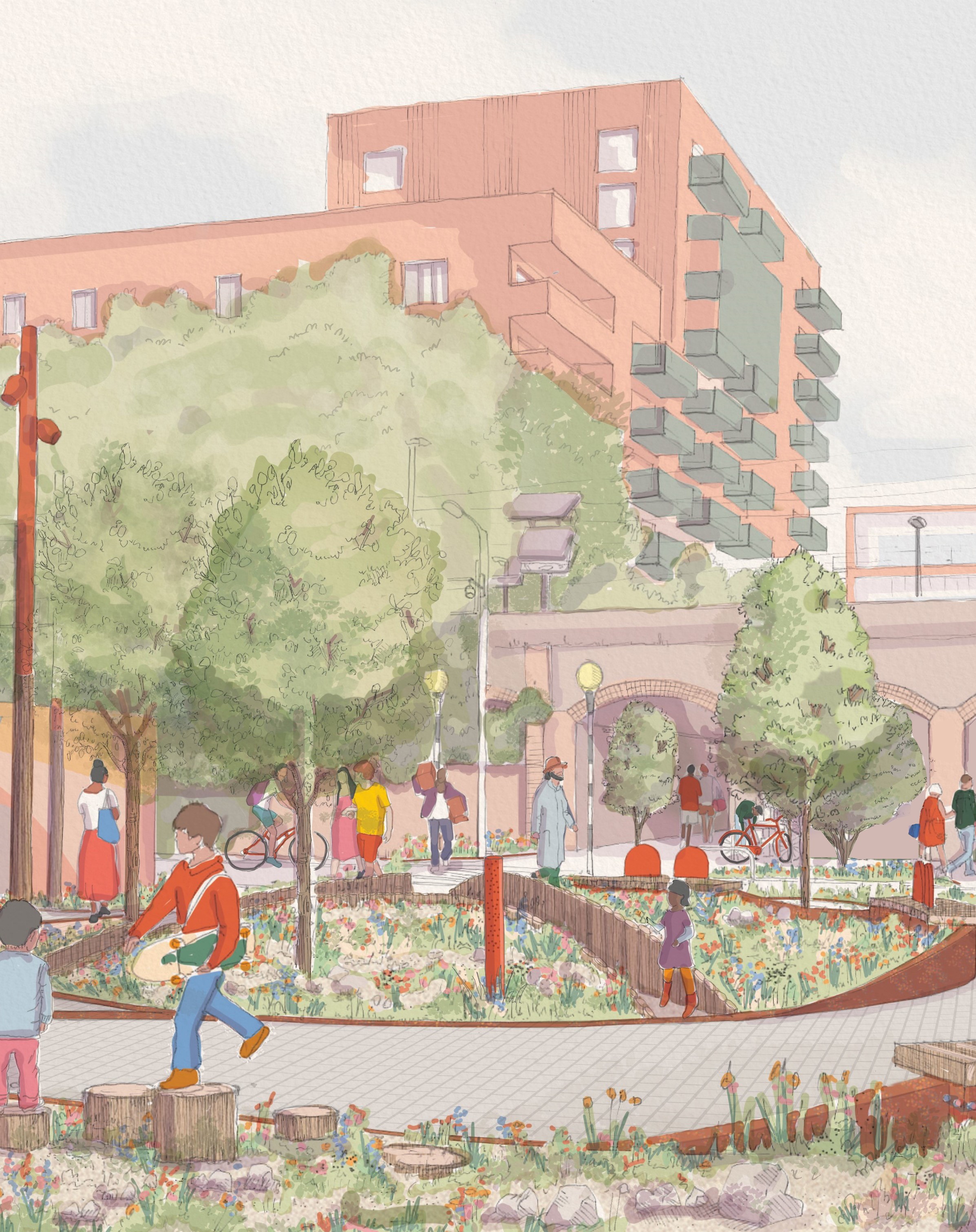 ✅ Increasing green space – Planting including new trees to create a healthier, greener space, which has greater biodiversity and more climate resilient.